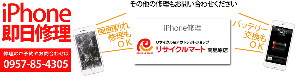 iPhoneの画面修理もバッテリー交換もリサイクルマート南島原店にお任せください!